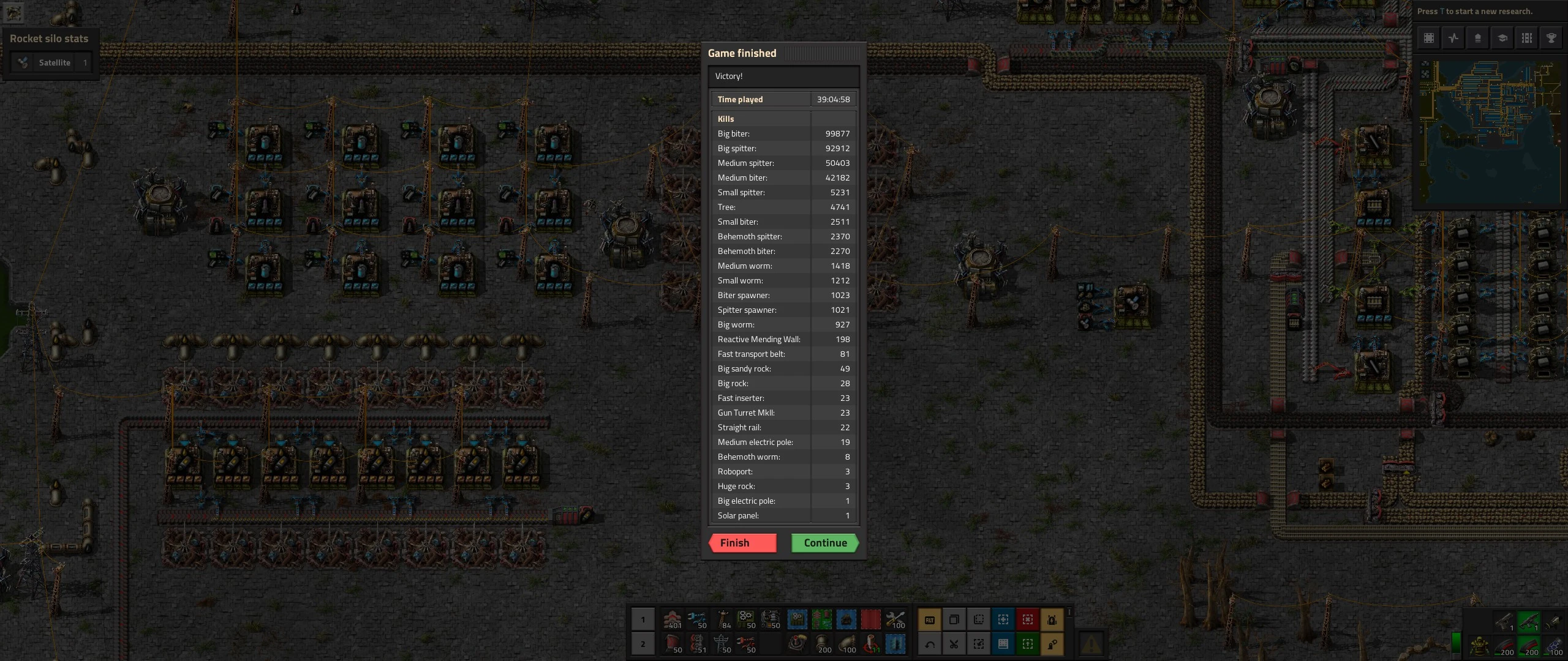 Factorio v1.0 has been released this week, in time to finish off my most recent map (with the Rampant mod for enemies and weapons).
